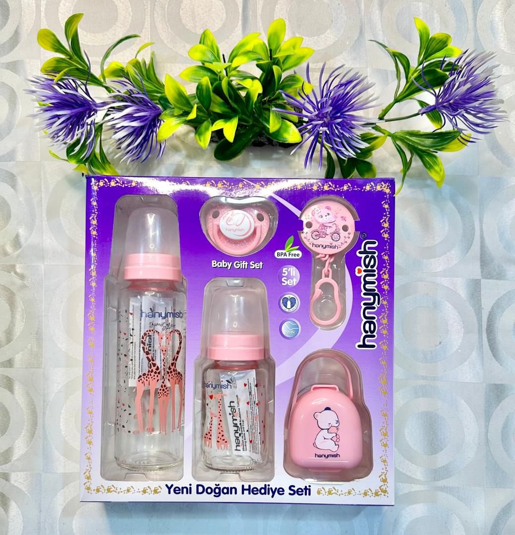Coffret Naissance Fille – Set 5 Pièces Biberons & Accessoires Hanımış (en verre)