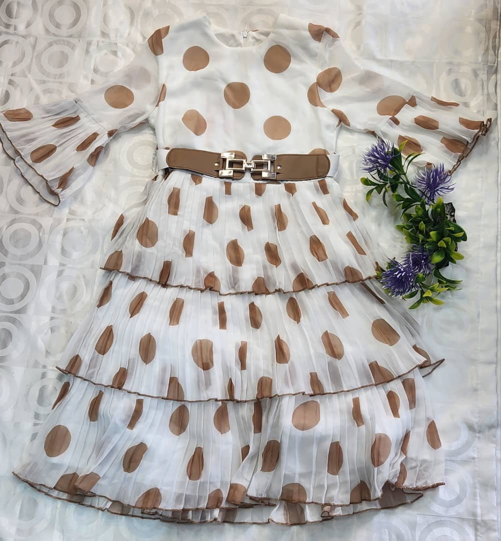 Robe Fille Élégante à Pois – Plissée à Volants avec Ceinture