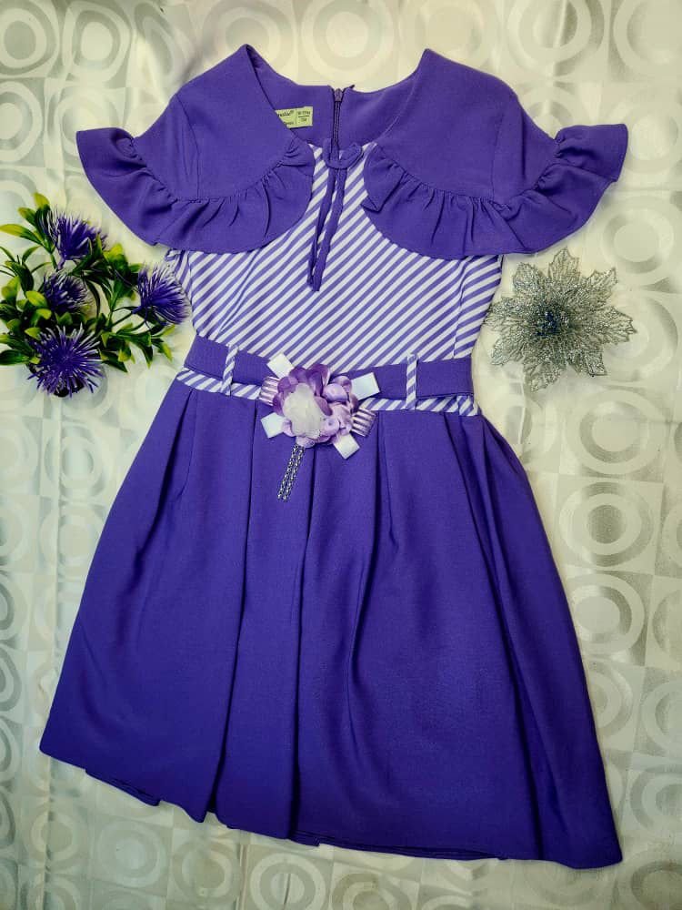 Ajoutez une touche de charme à la garde-robe de votre fille avec cette magnifique robe violette à rayures. Dotée d’un haut à volants élégants, d’une ceinture décorée d’une fleur en tissu et d’un bas plissé fluide, cette robe est parfaite pour les cérémonies, anniversaires, ou fêtes de fin d’année scolaire. Confortable et raffinée, elle allie style moderne et détails classiques pour un look irrésistible.
